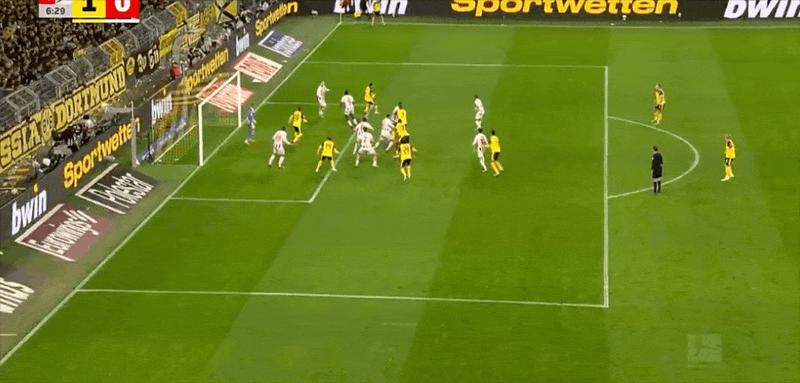 10’多特前场边线球造混乱,安东近距离推远角被挡出端线