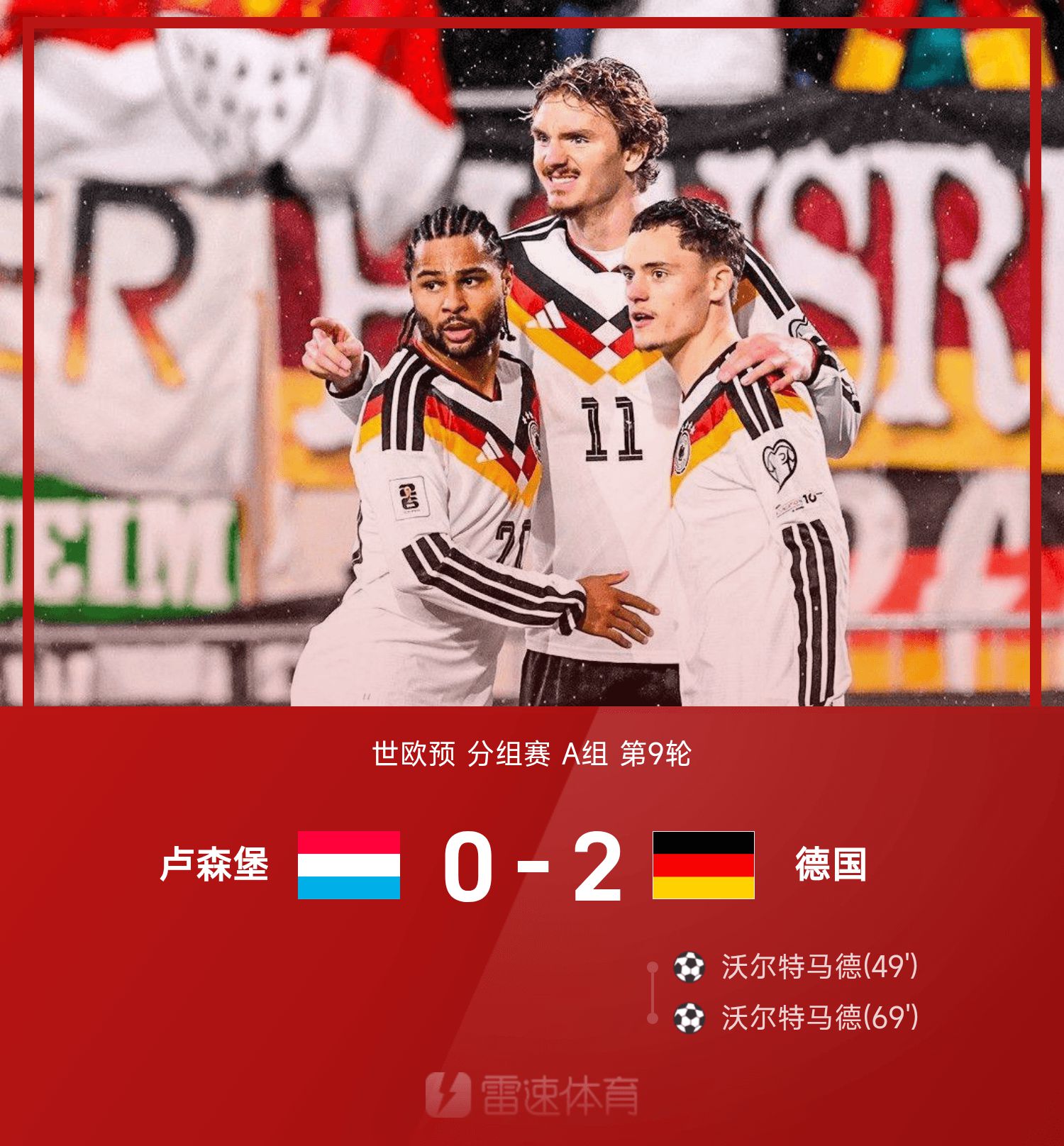 世欧预战报:沃尔特马德梅开二度,德国2-0胜卢森堡