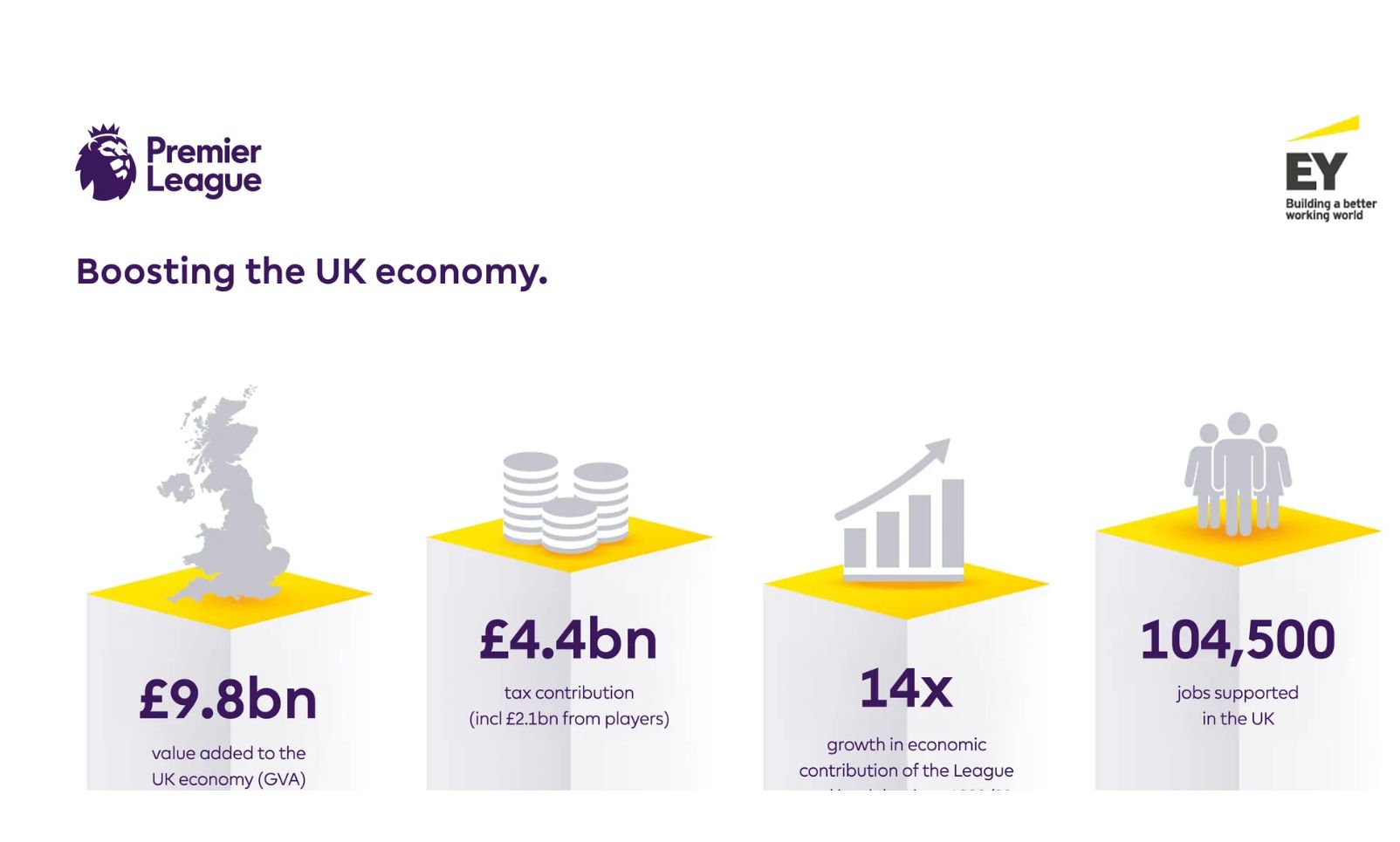 英超对英国经济增长贡献显着,23/24赛季创收98亿英镑