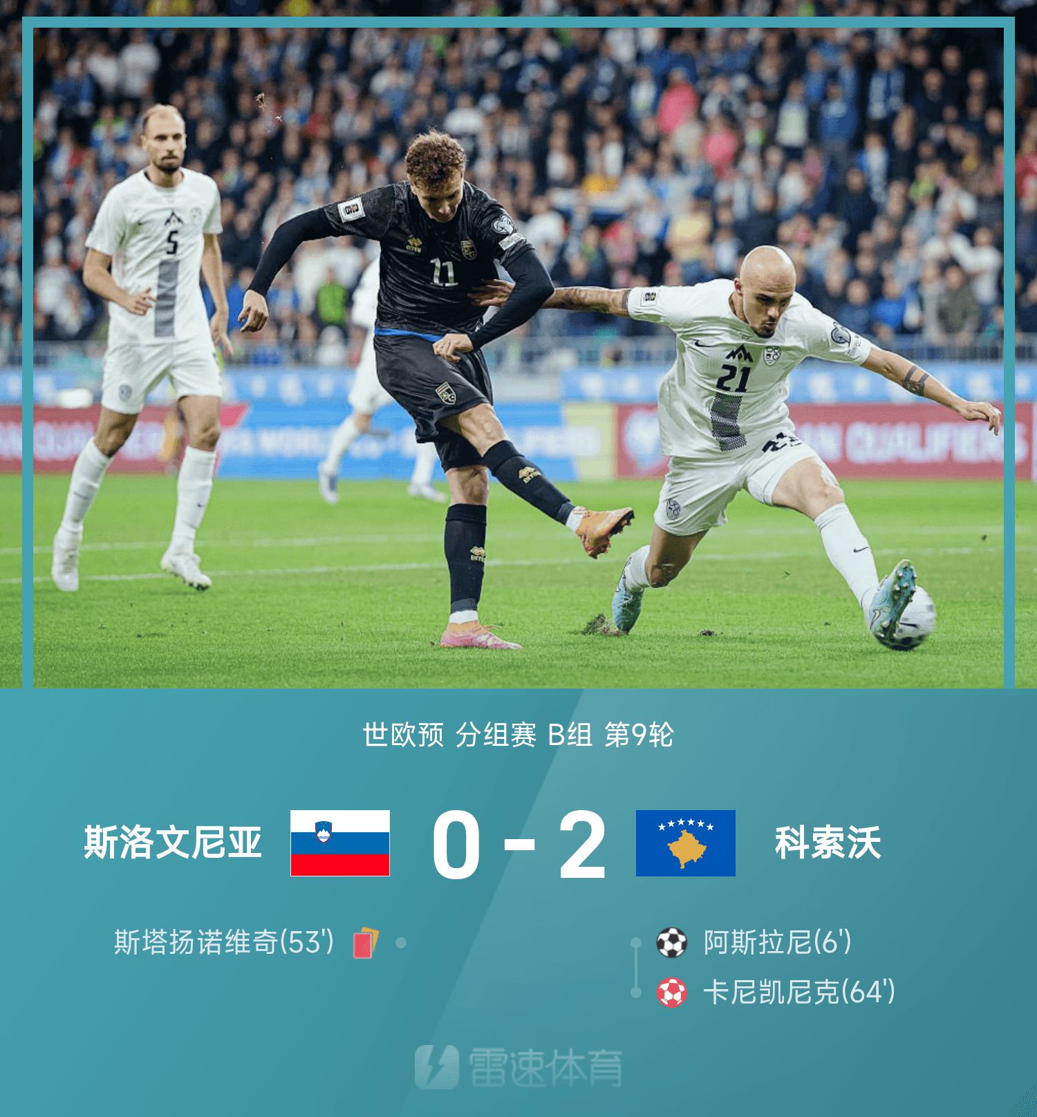 世欧预战报:卡尼凯尼克惊天乌龙,科索沃2-0十人斯洛文尼亚