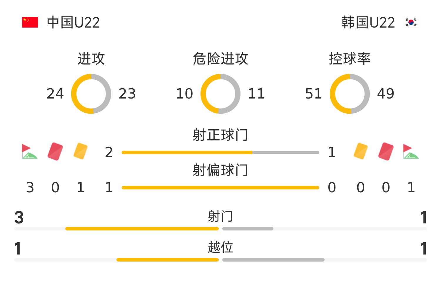 韩国U22首发阵容:1-文炫浩、24-张硕桓、22-朴俊誓、4-丁升培、23-信敏河、17-李建熙、2-姜民俊、16-朴贤宾、8-金东进、19-金容鹤、18-郑在尚