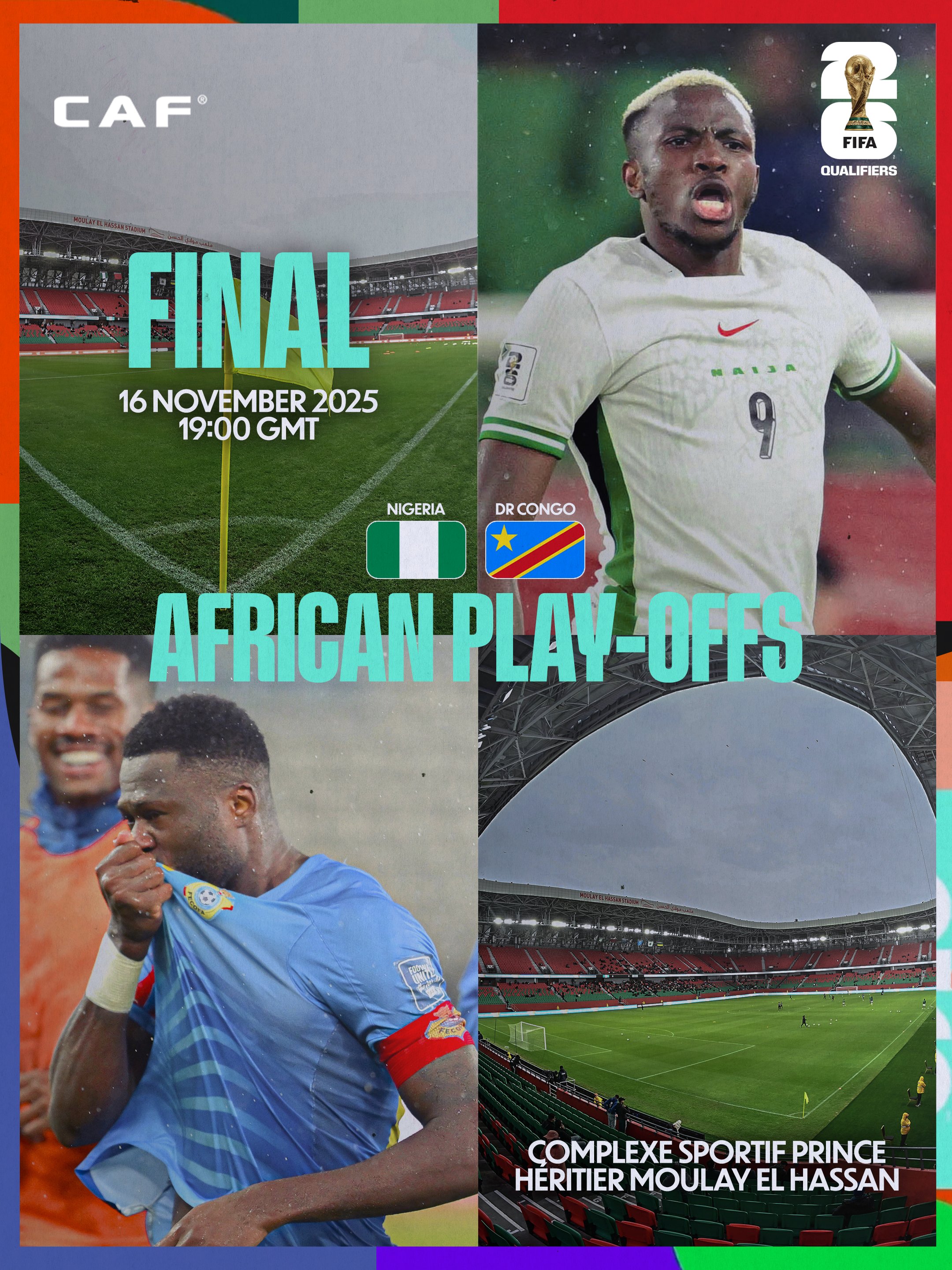 除了欧洲球队之间的竞赛,世非预附加赛的总决赛也将在北京时间明日凌晨3:00打响。总决赛为单回合制,持续在摩洛哥的中立场地内进行,尼日利亚与民主刚果之间的胜者将晋级洲际附加赛,与来自其他大洲的对手持续竞争世杯赛正赛资格。