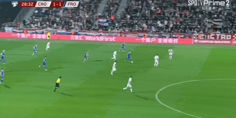 21’克罗地亚险些再度失守!法罗三秒区内无人盯防顶球吊射击中立柱弹出