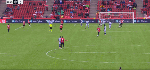 18’莱万特前场双人迅速插上形成反击,但却将球传大错失良机