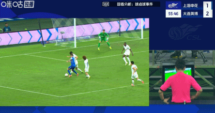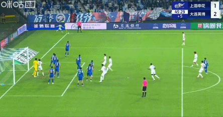 45+1’申花逃过一劫!朱鹏宇跟进射门得手,因越位在先被吹无效