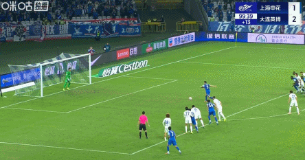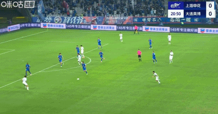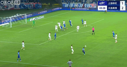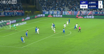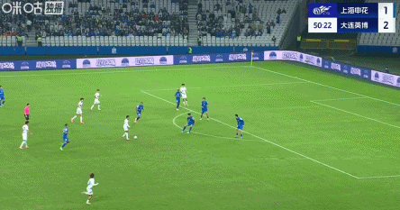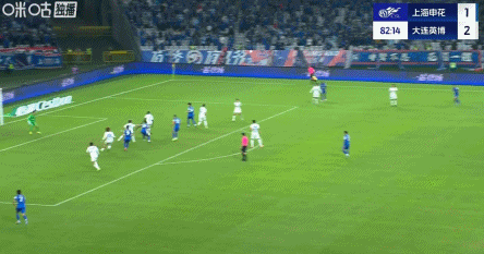 83’申花右路传禁区,徐皓阳后点侧身抽射打飞