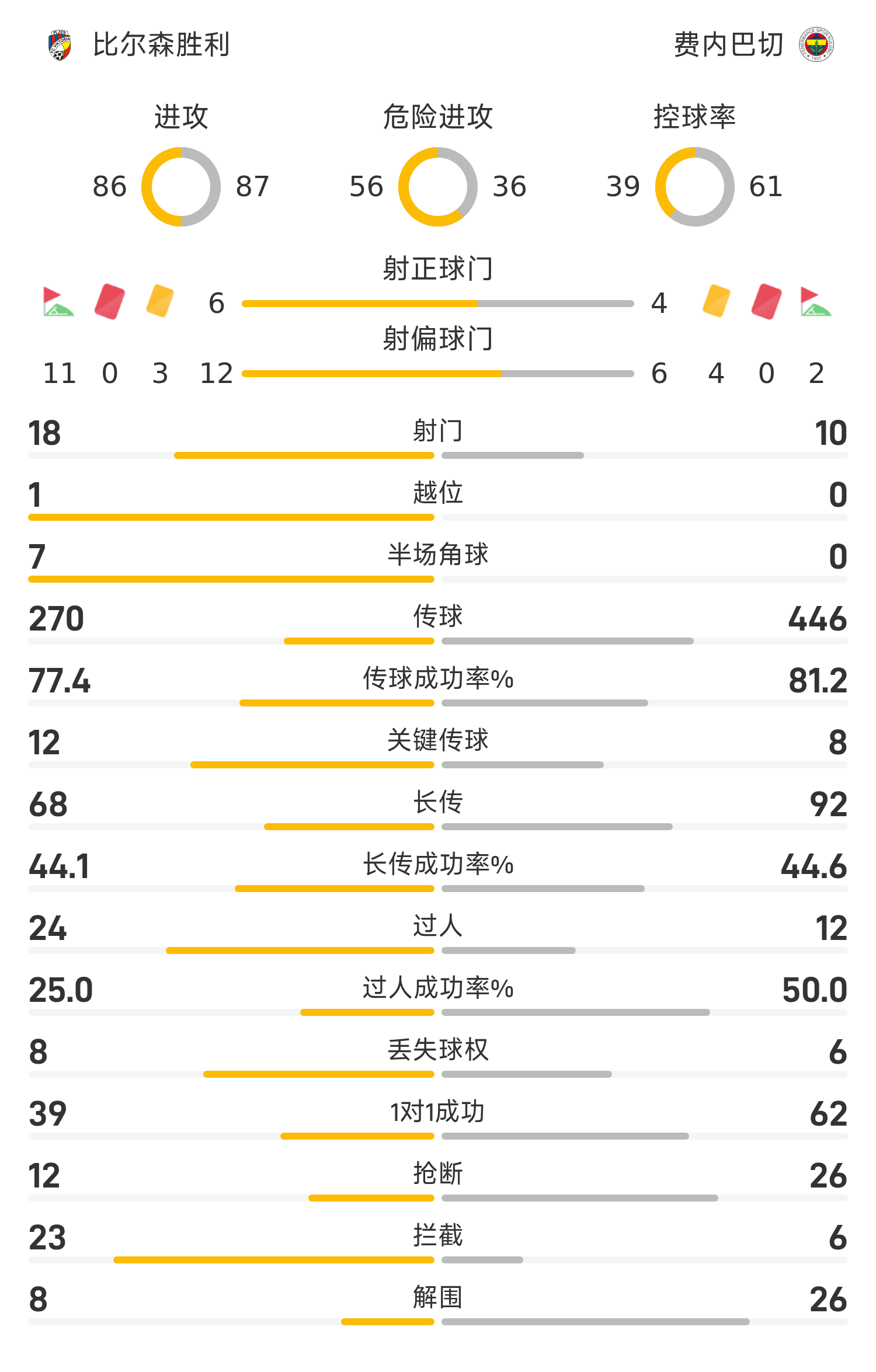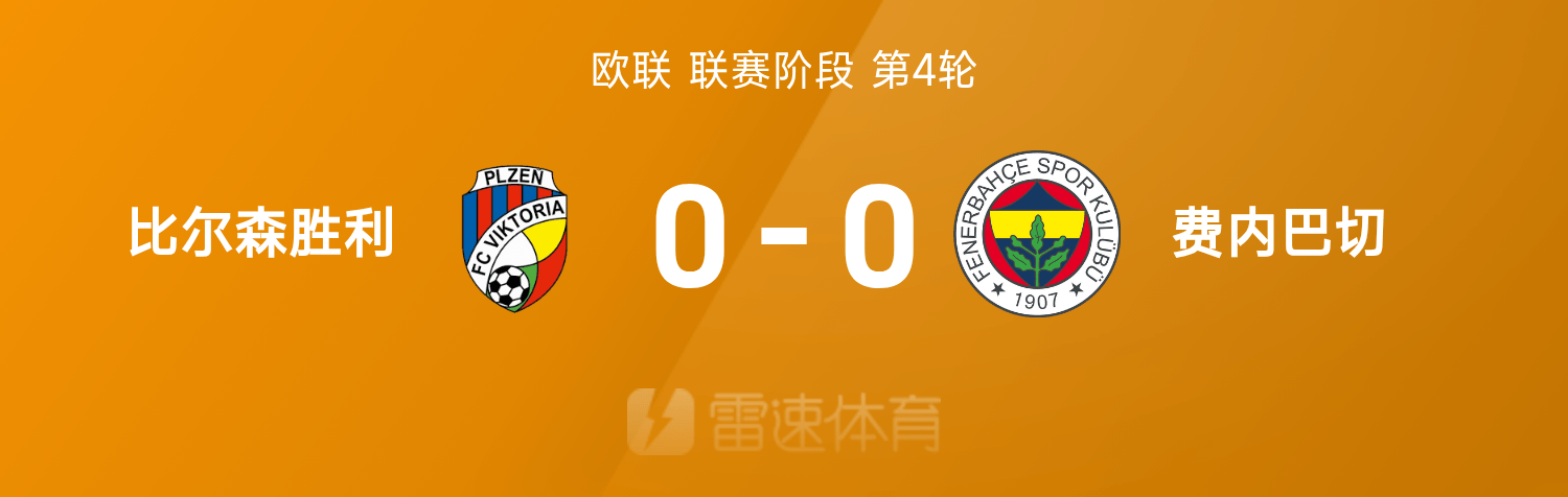 欧联战报:双方均无建树互交白卷,比尔森胜出局0-0费内巴切