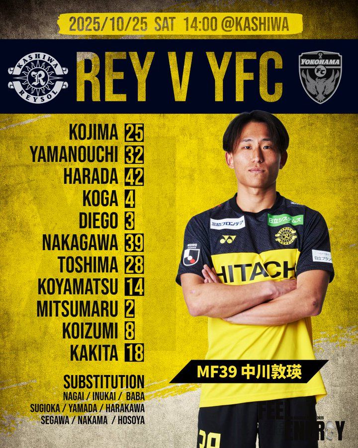6686体育10月25日讯 日职联第35轮,柏太阳神主队场对阵横滨FC。赛前,双方公布首发名单。