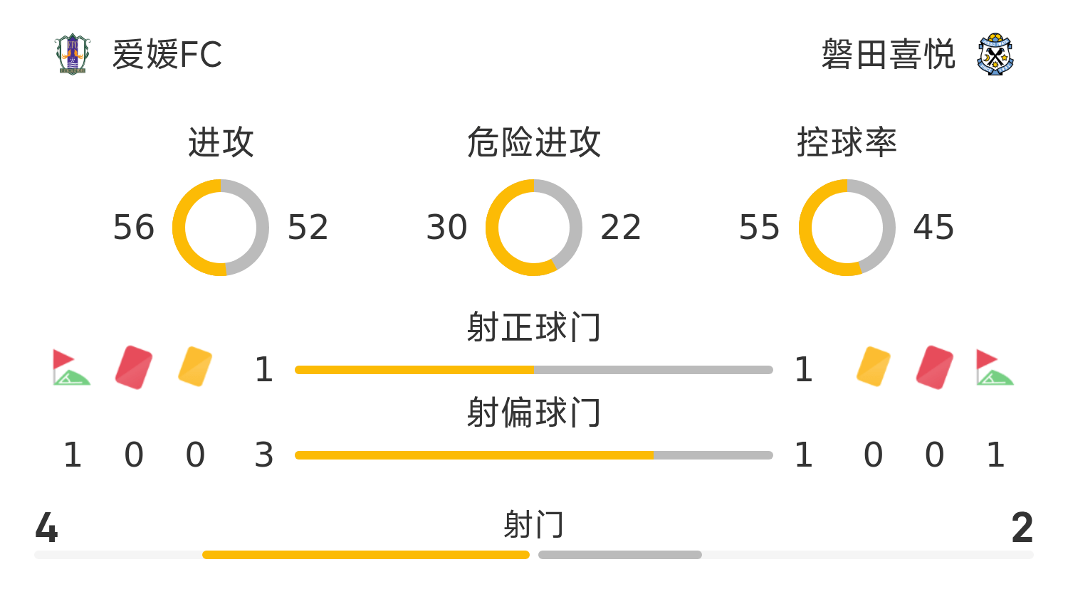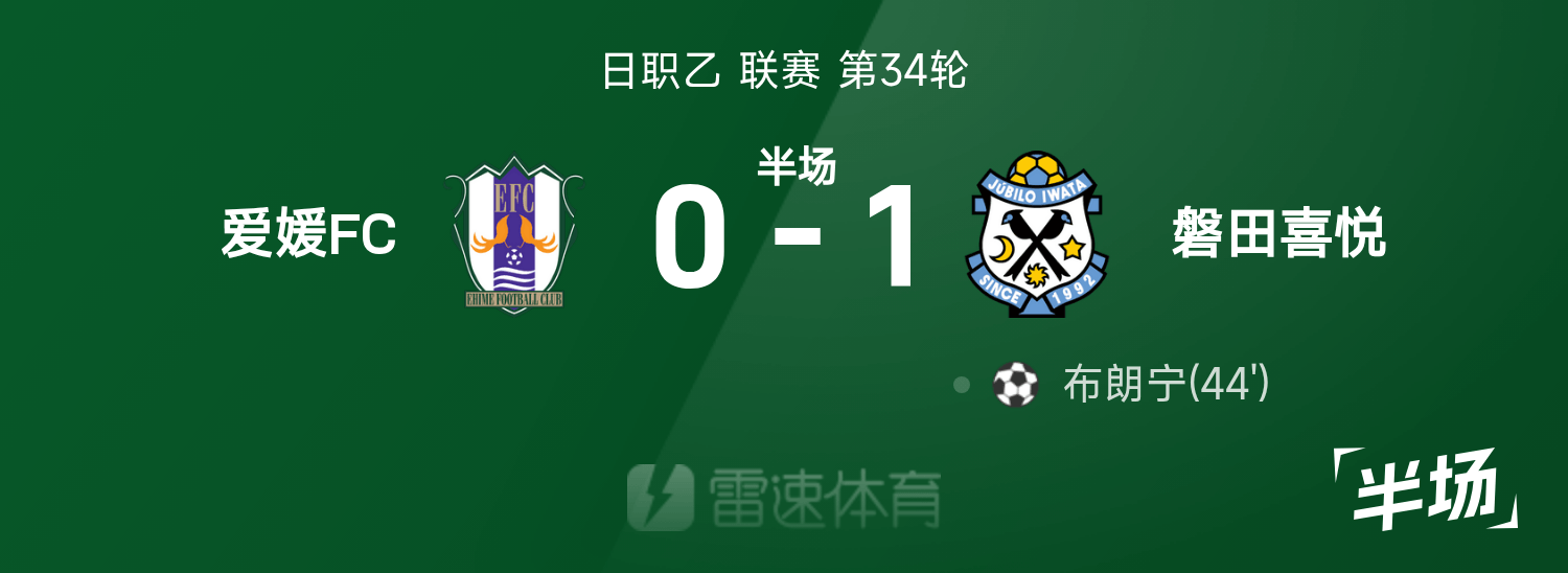 日职乙半场:布朗宁破门,爱媛0-1磐田喜悦