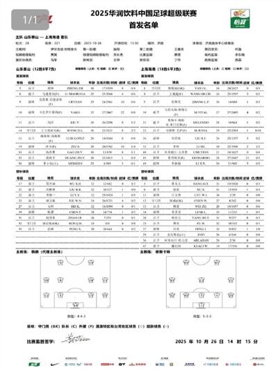 山东泰山首发:14-王大雷、5-郑铮、15-路易斯-洛佩斯(F)、11-刘洋、33-高准翼、35-黄政宇、8-马德鲁加(F)、19-泽卡(F)、38-李小恒、10-卡扎伊什维利(F)、9-克雷桑(F)