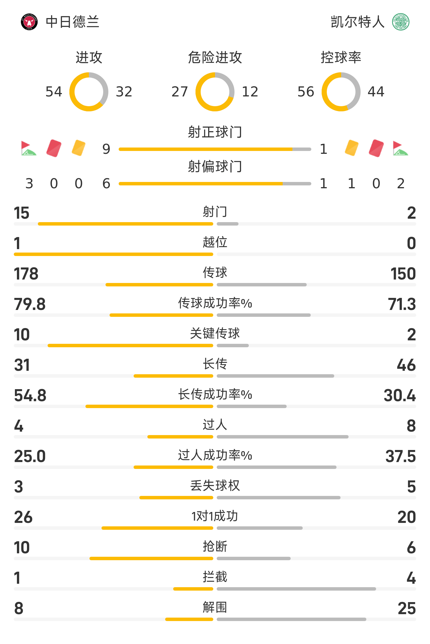 欧联半场:葛戈查1射1传,中日德兰3-0凯尔特人