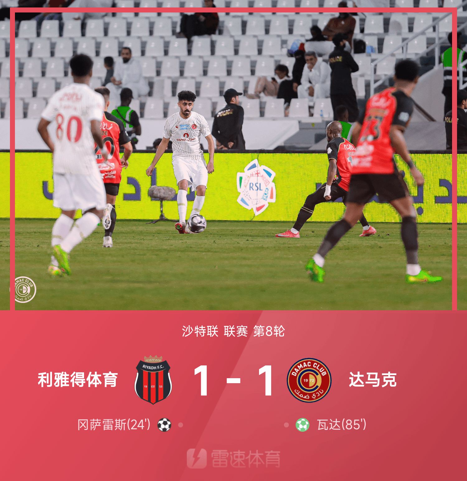 沙特联战报:瓦达点射扳平局,利雅得体育1-1战平达马克