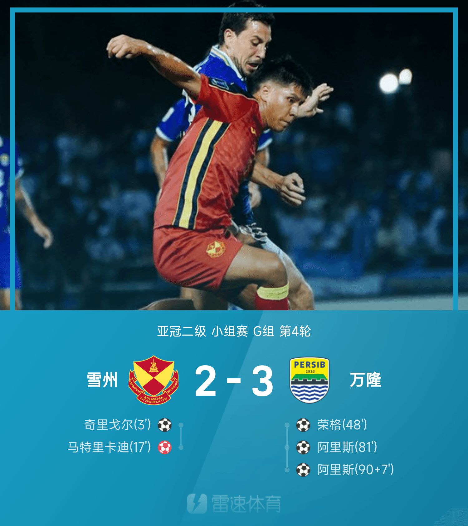 亚冠二级战报:阿里斯梅开二度+最后一投,万隆3-2逆转雪州