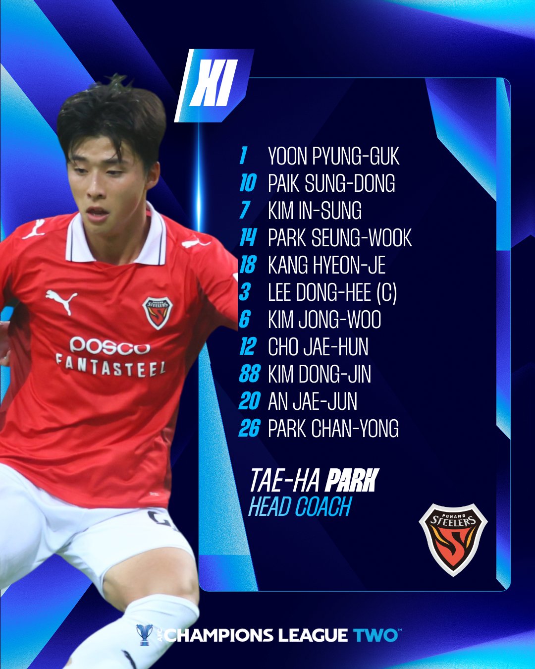 北京时间11月6日18:00,亚冠二级联赛事分组赛阶段第四轮,浦项铁人主队场迎战淡滨尼流浪者,赛前首发公布。