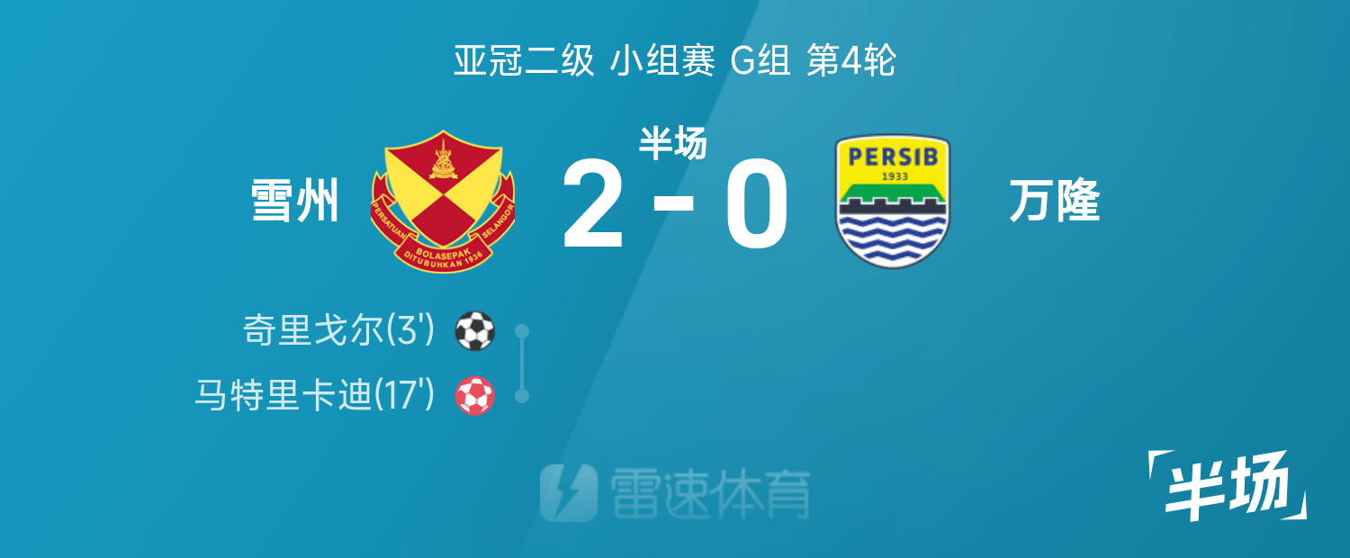 亚冠二级半场:奇里戈尔闪击建功,雪州2-0万隆