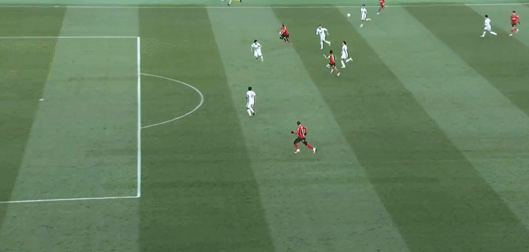 39’安以恩门前得球随即起右脚兜射,皮球滑门而过飞出端线
