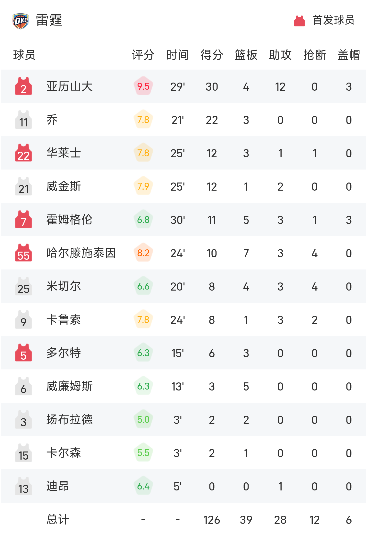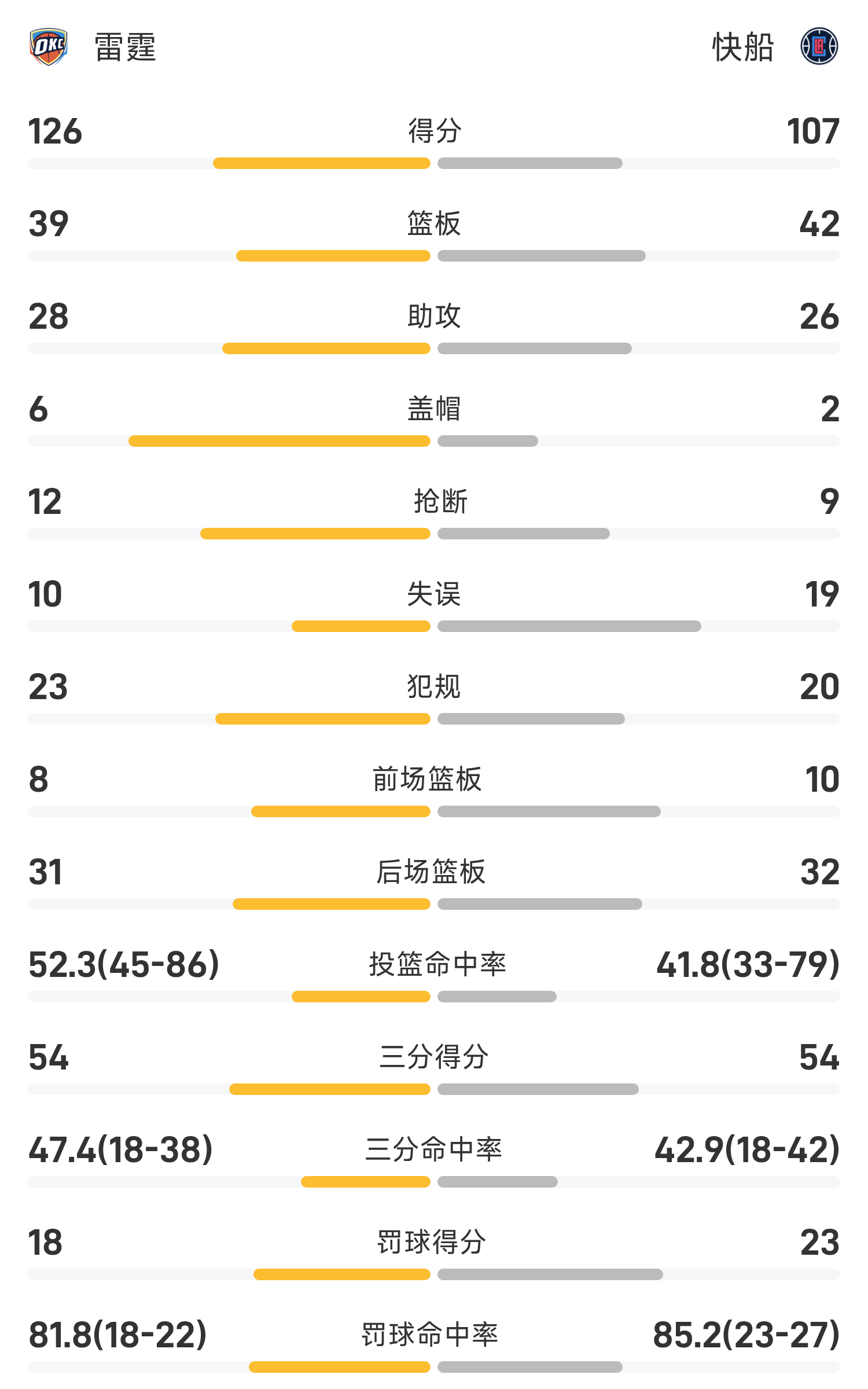 NBA战报:亚历山大30分12助,雷霆126-107大胜快船