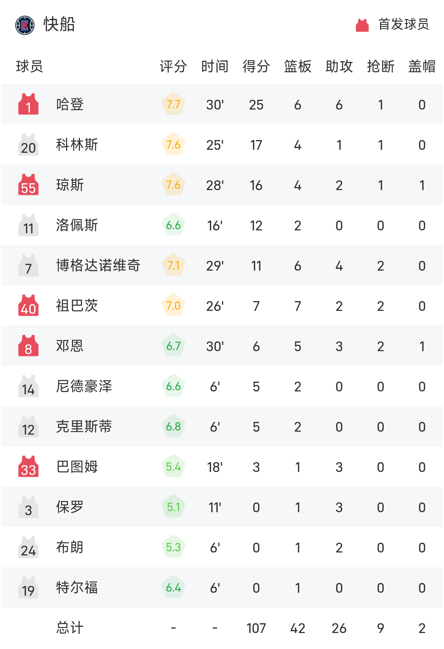 球员数据 查看更多
