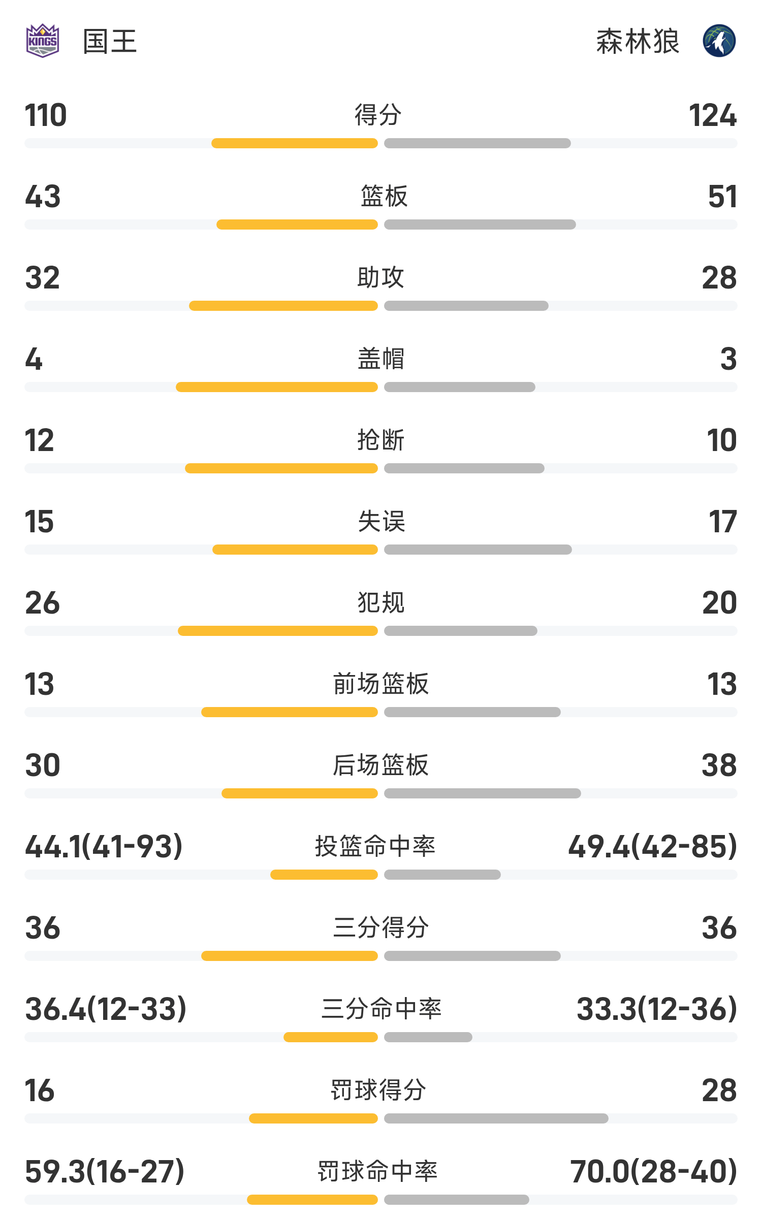 NBA战报:爱德华兹30分,森林狼124-110击败国王
