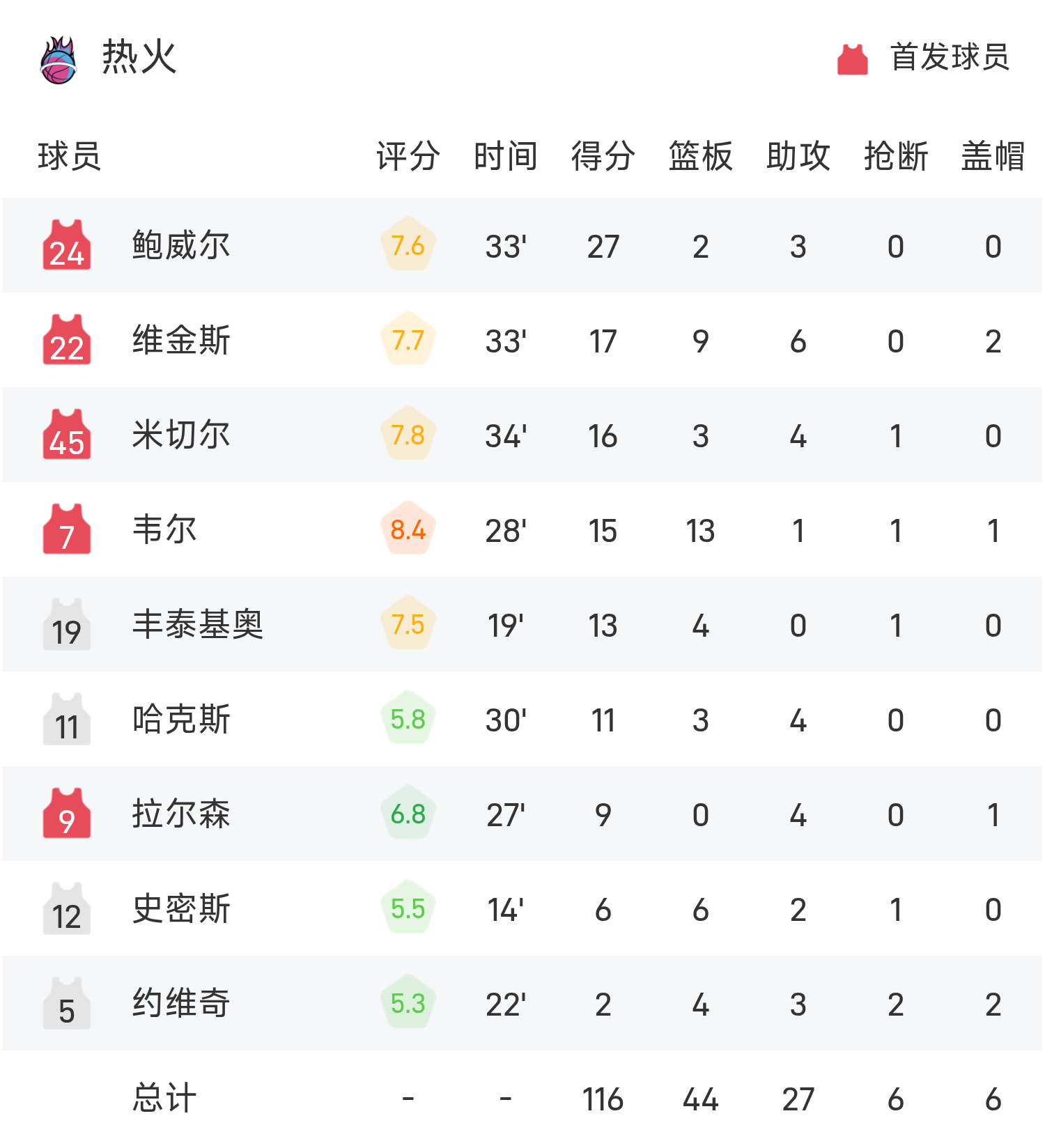 6686体育11月13日讯 25/26赛季NBA 常规赛,热火对阵骑士。双方全场战罢,热火116-130不敌骑士。阿伦砍下全场最高的30分10板2助,率领骑士胜利取胜。