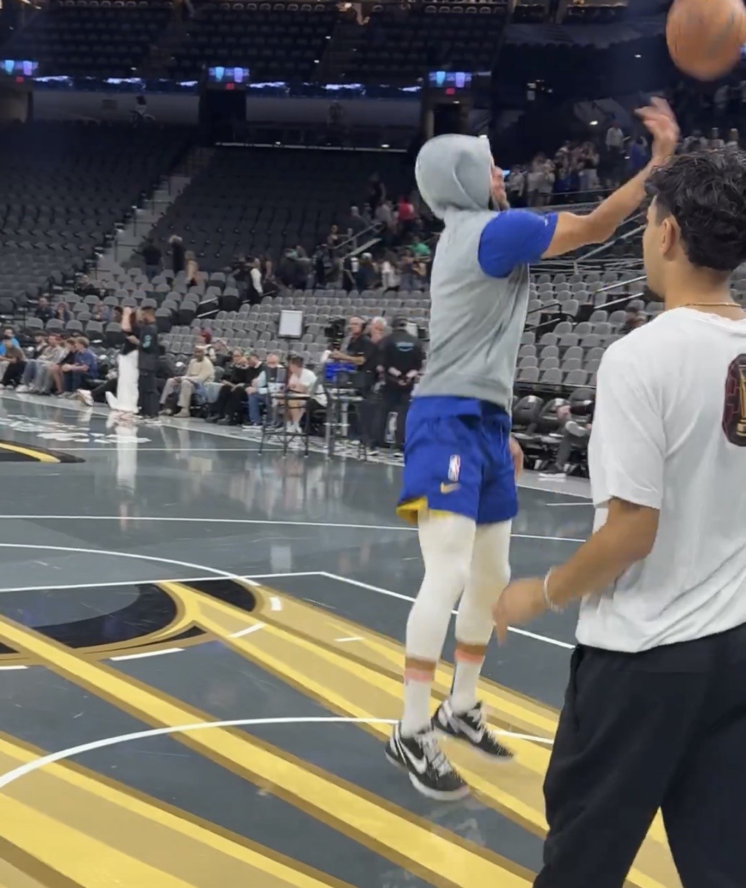 其中刚与体育品牌安德玛分道扬镳的库里,今日练习中上脚了耐克品牌的科比6代篮球鞋。