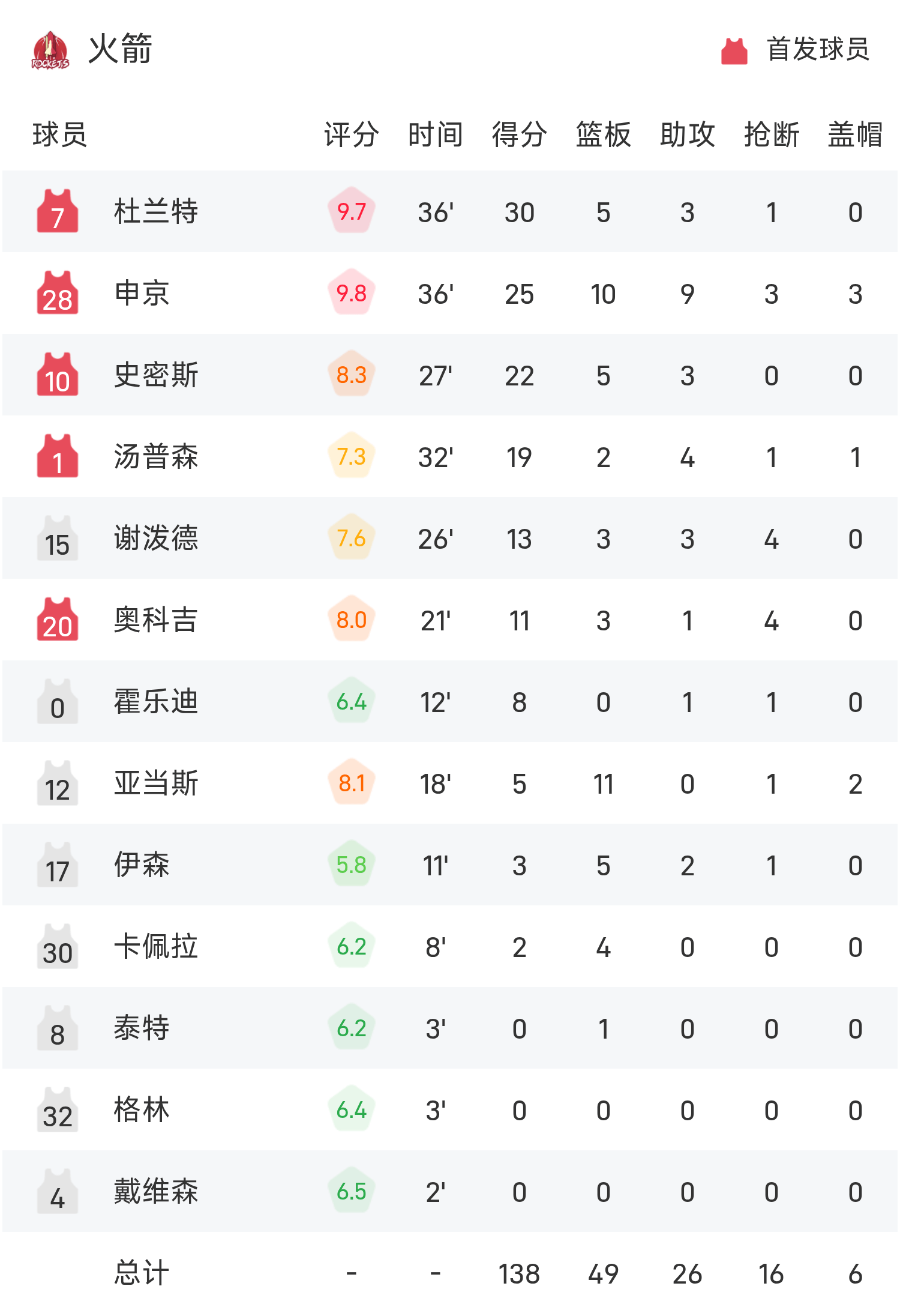 NBA杯战报:杜兰特30分,火箭140-116大胜开拓者