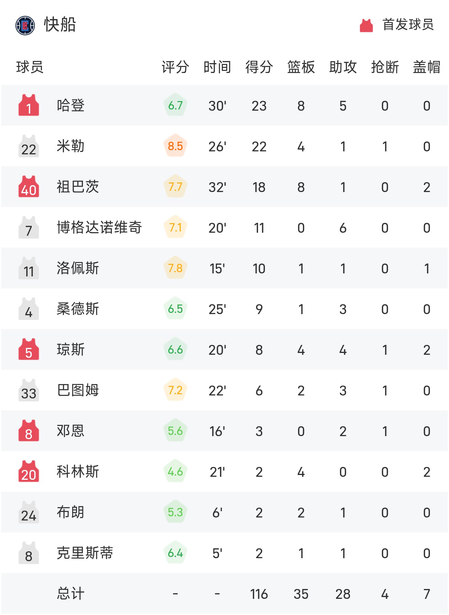 NBA战报:约基奇55分12板6助,掘金130-116击败快船