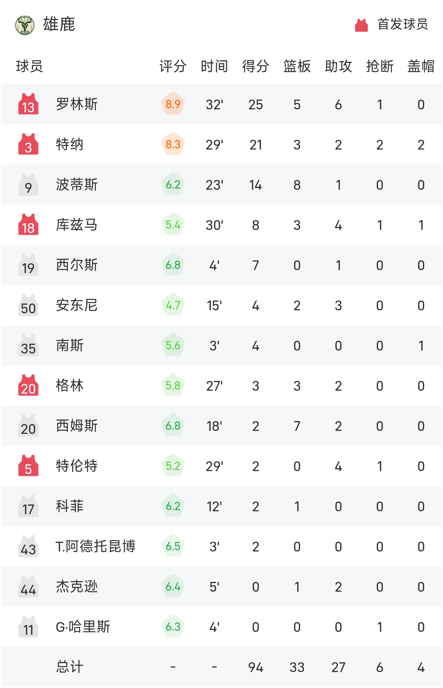 球员数据 查看更多