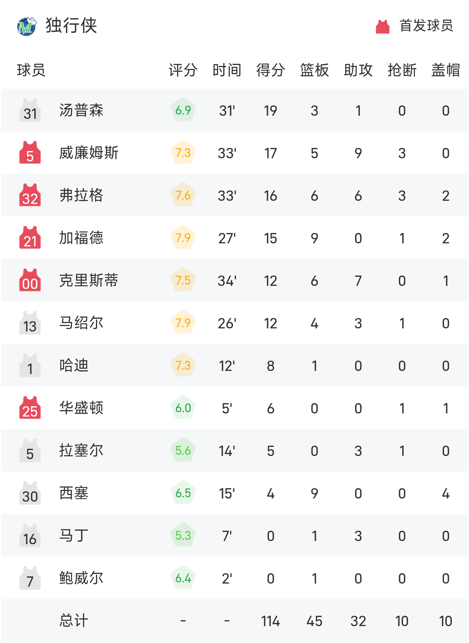 球员数据 查看更多