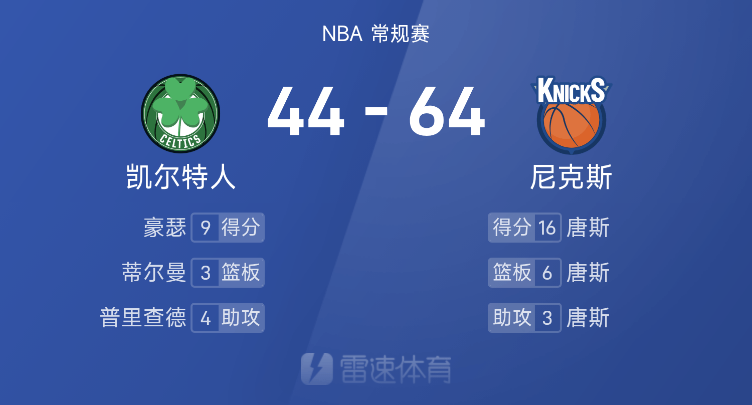次节竞赛,绿军8分钟合砍6分,尼克斯狂轰一波28-6完成逆转局赛果分,唐斯砍下半场最高的16分6板3助。
