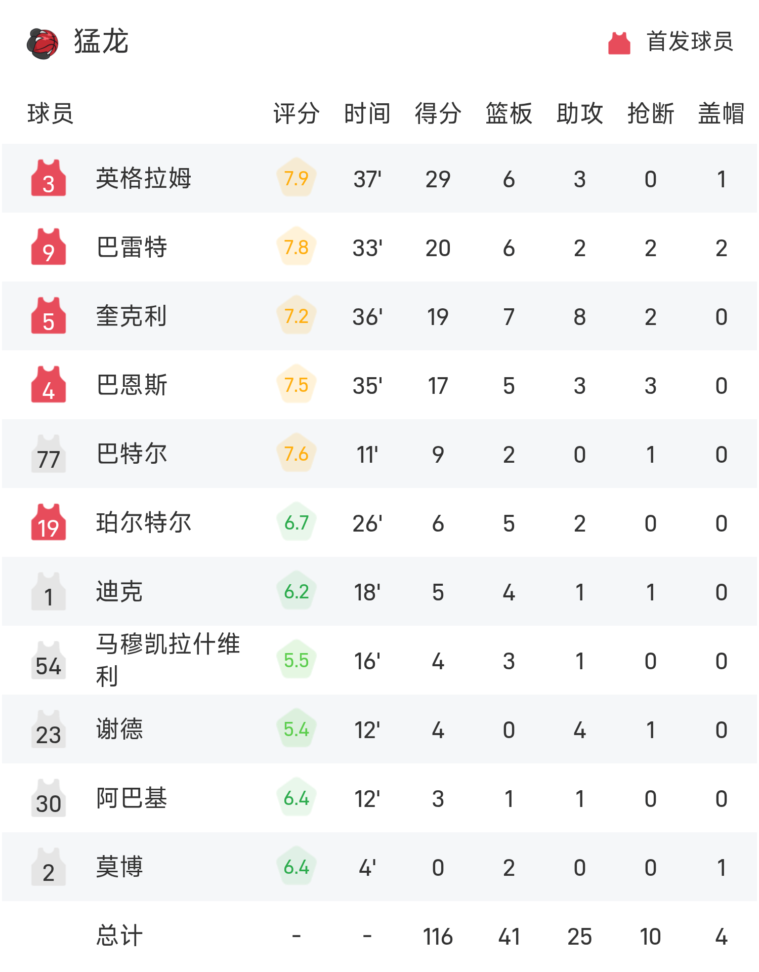 球员数据 查看更多