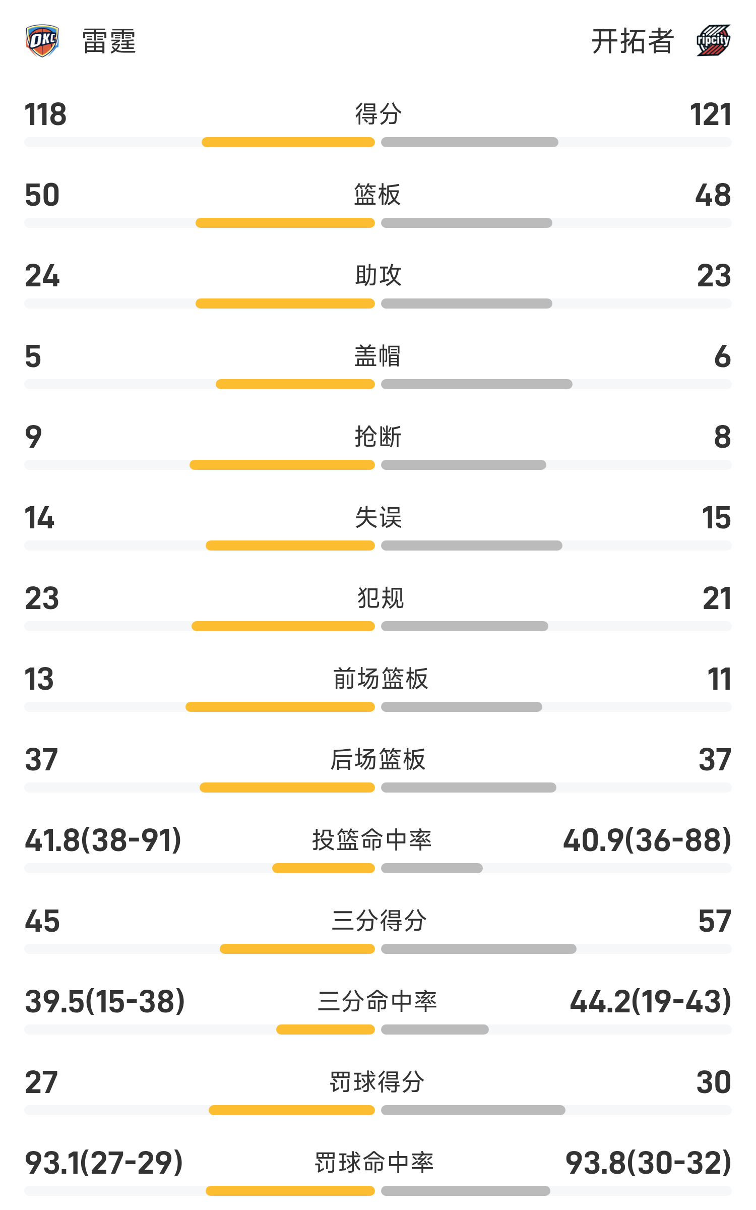 6686体育11月06日讯 25/26赛季NBA 常规赛,开拓者对阵雷霆。双方全场战罢,开拓者121-119战胜雷霆。阿夫迪亚得到26分10板9助率队取胜,亚历山大空砍全场最高的35分9板4助。